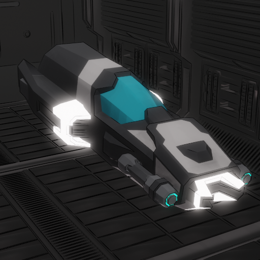 Description: Blue Glassed, Double Guns. Features a pair of high-powered guns with a spiral firing pattern, ideal for confusing enemy sensors and dodging incoming fire.